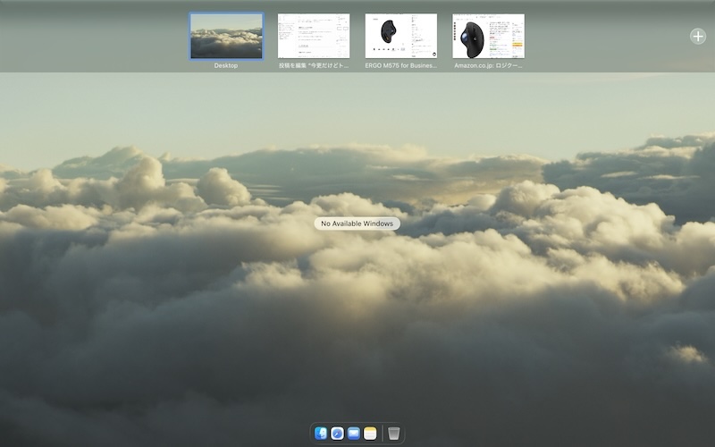 マジックマウスだと、隣のデスクトップへの切り替えは二本指でスワイプするだけという簡単な操作です。